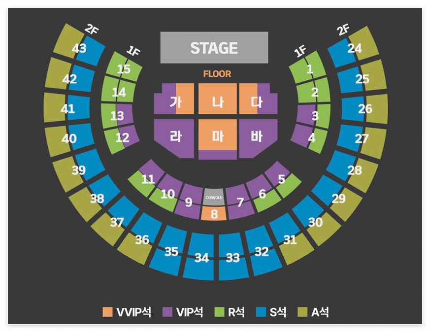 콘서트 티켓은 다음과 같이 구분됩니다.